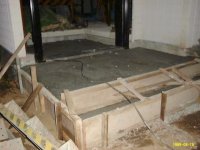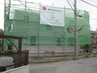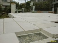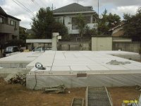 玄関の部分にコンクリートが流され玄関の下地が出来たみたいです。足場造りが進んでいます。さらに2階床部分のヘーベル板の設置が完了した模様です。