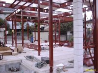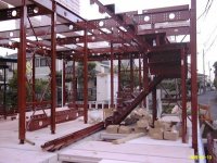 ベランダ、キャンティベランダの枠の鉄柱ができあがりました。