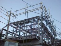 上記の予定で、床、柱、梁、サッシなどの建物を構成する主たる部材が搬入され、順次組み立ててまいります。組立が完了するのは、8月20日以降となります。