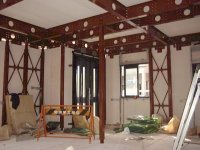 工事が再開され、玄関の造作と足場造りが始まりました。