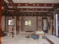 壁ヘーベルの取り付けがほぼ終了した模様です。シャッター雨戸の部材が届いていました。