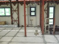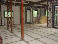 1階、2階の床ヘーベルに目地うめがされています。ベランダにもモルタルが流されていました。
