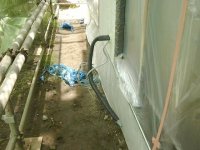 10月1週 10月2日(土) 一週間ぶりに家の中をのぞいてみました。 先週各スイッチ類の位置を確認したところにスイッチの枠が設置され、配線が内部、外部ともだいぶ進んでいました。 また、床の部材と、天井の断熱材が届いていました。 外部では、塗装の準備のためのマスキングが行われていました。担当の方にお聞きしたところ来週から塗装の作業予定だそうです。