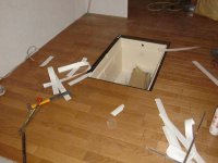 また、階段の造作も終了し、家で飼っている猫のための出入口も完成していました。