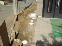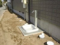 給水メーターのケースも交換され、排水関係も終了し、ガーデンパンの取り付けも終了していました。